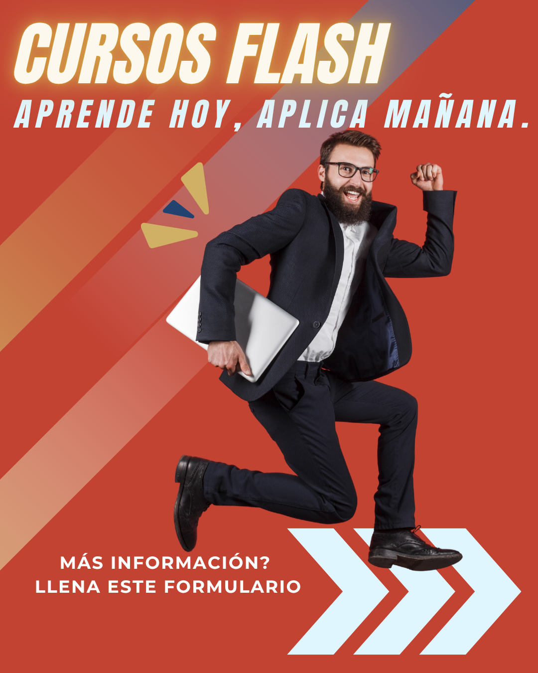 Los Cursos Flash son programas intensivos y prácticos que combinan aprendizaje y aplicación inmediata. No esperas al día siguiente: usas las herramientas en la misma sesión para resolver retos reales de tu entorno profesional.